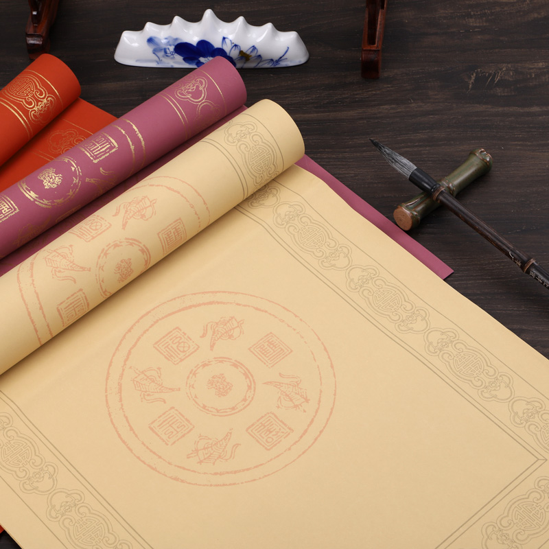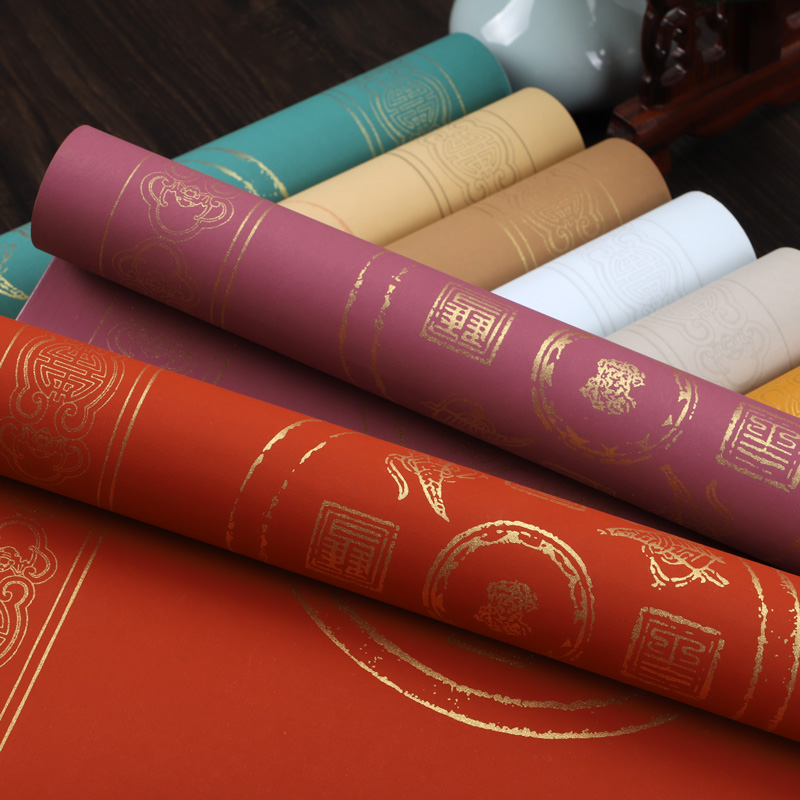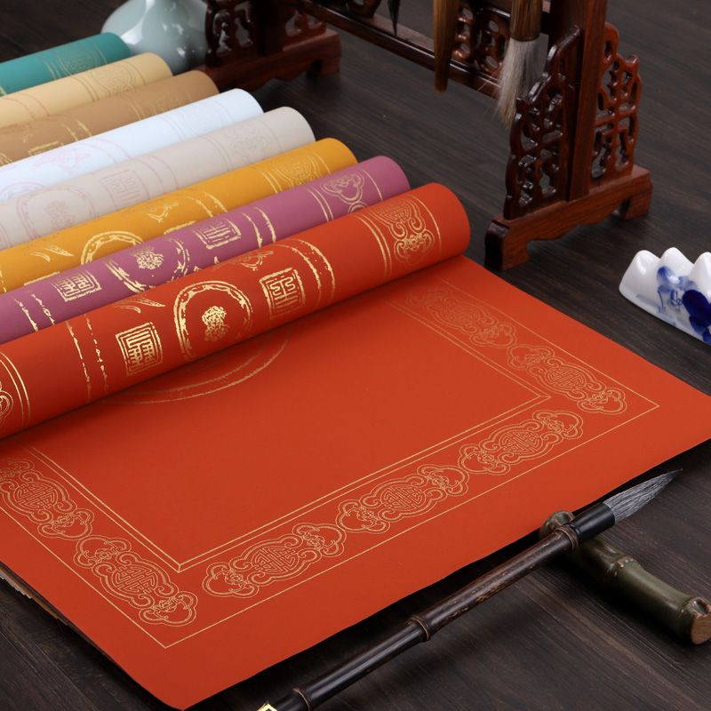 Batik rice paper calligraphy special paper National Exhibition Contributed works paper four feet off Wannian red blessings and longevity five-character seven-character rice paper couplet paper half-baked and half-cooked brush words tiledang depicting gold Xuan handmade rice paper