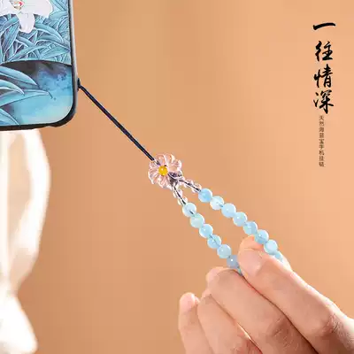 Natural sea blue treasure mobile phone lanyard Crystal mobile phone lanyard short wrist personality female ring buckle hipster pendant