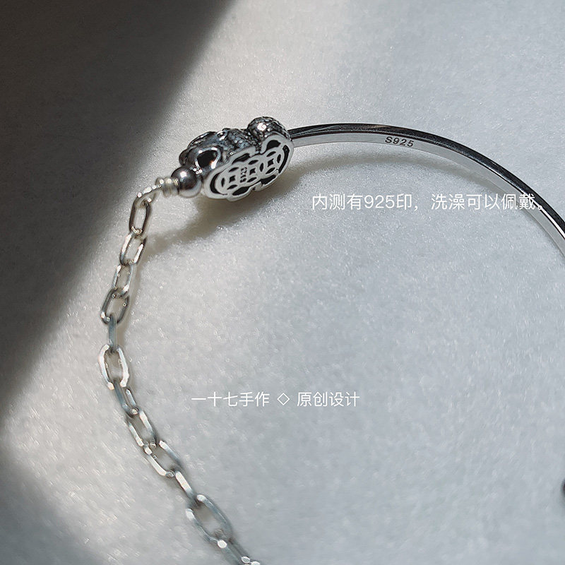 #17 Original Design s925 Sterling Silver Pixiu's Life Year Sterling Silver Bend Pipe Hand Spot