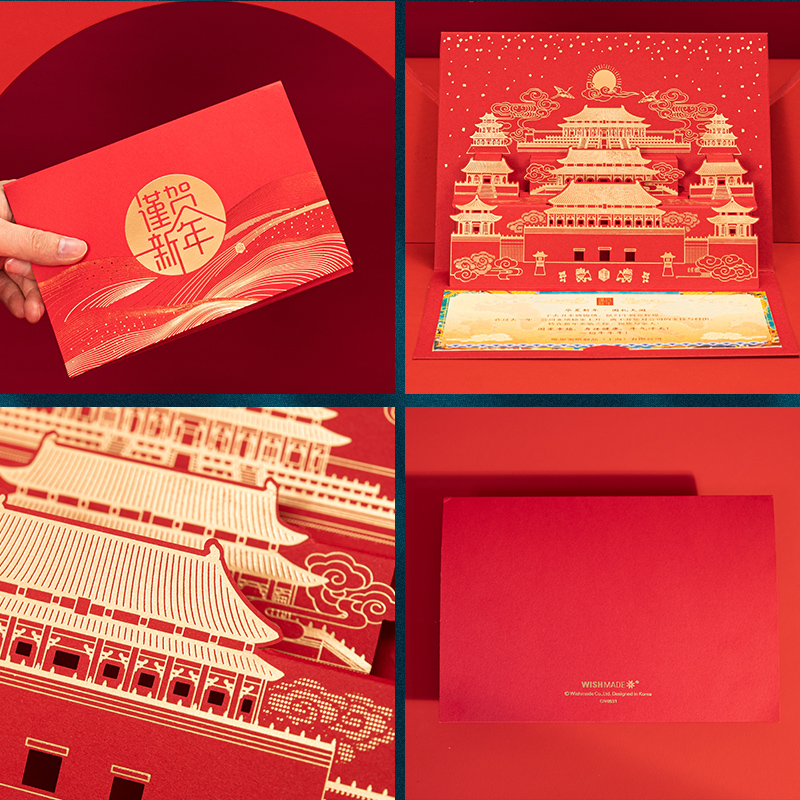(Handwritten) State Wind Cubism red main card Inner page Envelope Fire Lacquer Seal (custom) State Wind Cubism red Main card Inner page Envelope Fire Lacquer Seal (handwritten) National Wind Stereo Style Red