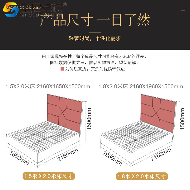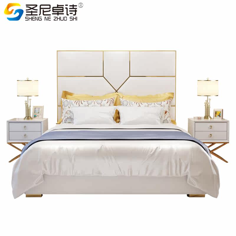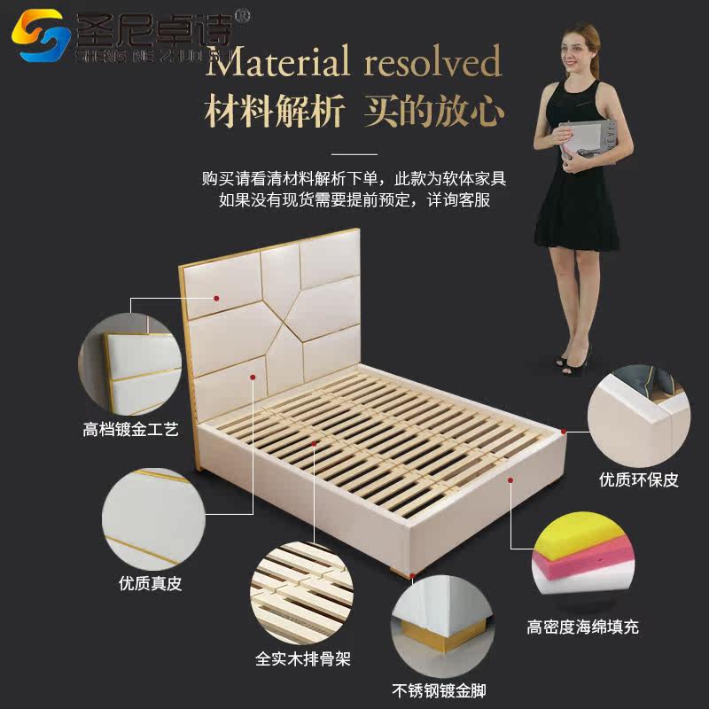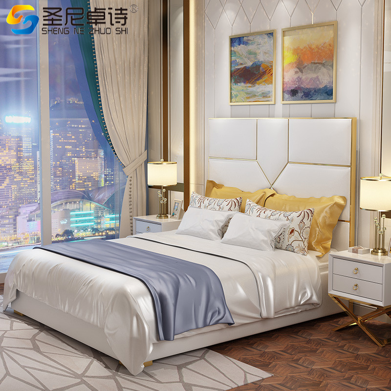 Light luxury leather bed Italian modern leather bed simple double bed 1 8 meters soft bed bedroom furniture light luxury wedding bed