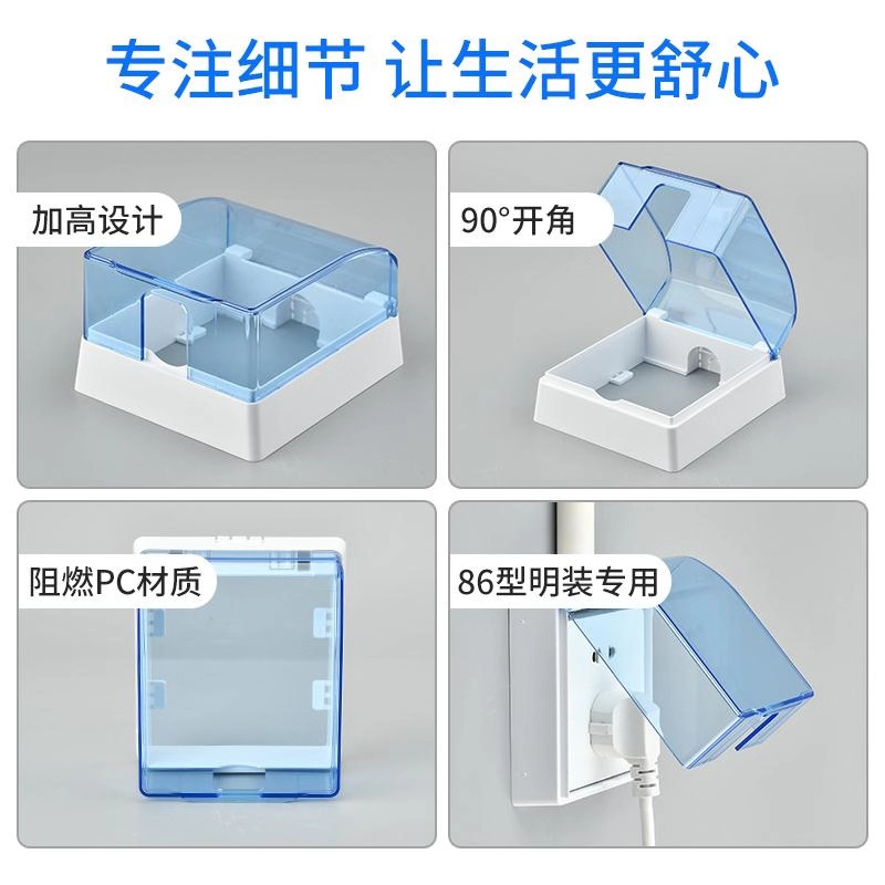 Type 86 open socket waterproof box transparent bathroom socket waterproof cover heightens adhesive open wire switch bed bag