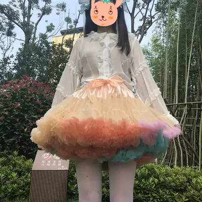 Lolita rainbow skirt support lolita cloud yarn skirt Super ponytail soft yarn cotton candy boneless petticoat skirt support