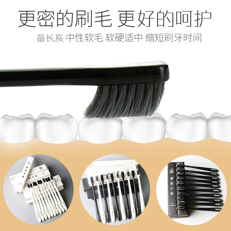 Bamboo charcoal soft hair 10 packs non-disposable travel family home hospitality small head adult children hard hair male toothbrush