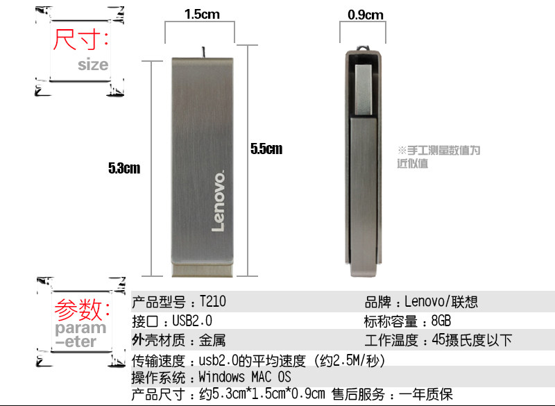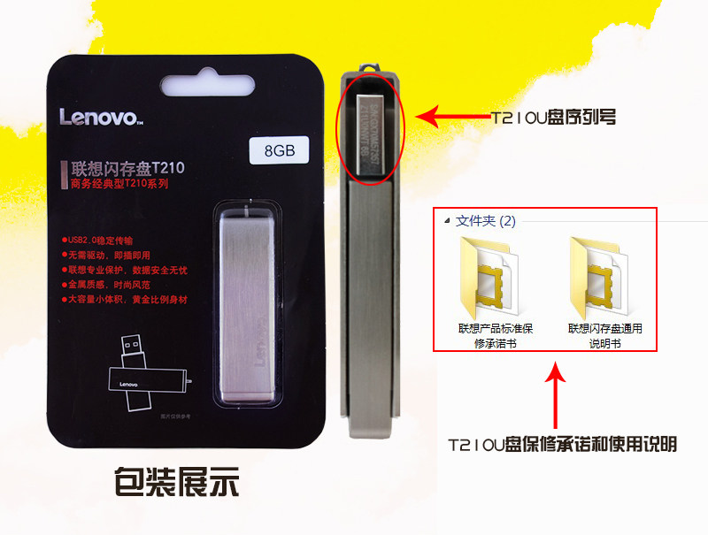 Lenovo T210U disc 8G64G metal small portable U disc business student computer universal 360 ° rotating encryption