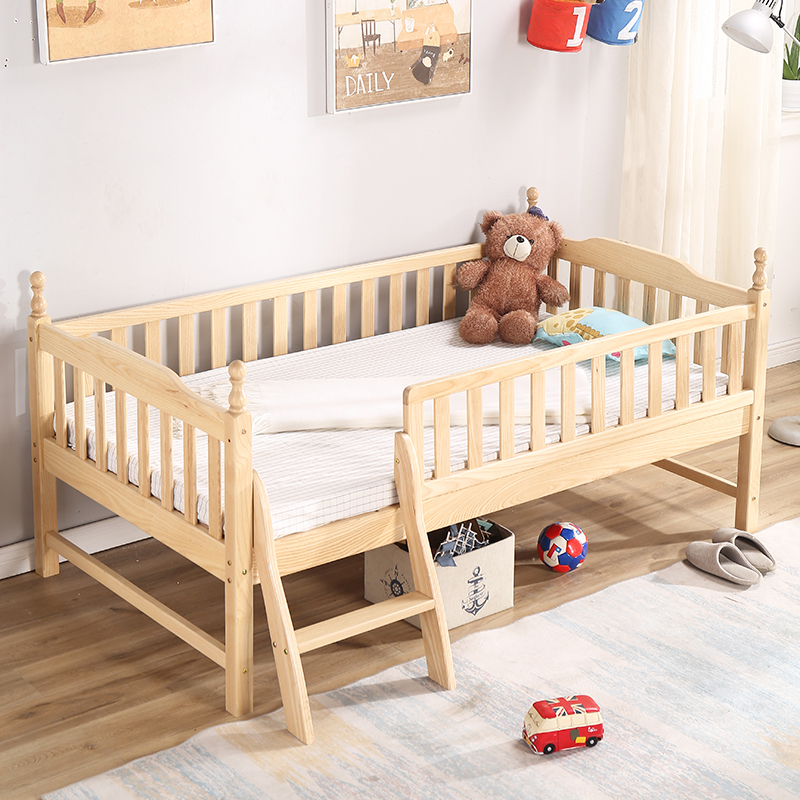 Solid Wood Children's Bed With Guardrails Beech Wood Bed Splicing Large Bedside Crib Single Bed Single Bed Baby Bed Custom God Enlighk