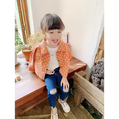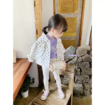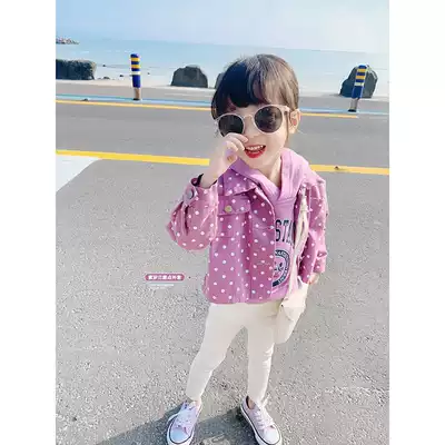 Amybaby girl 2021 spring new small coat polka dot denim casual foreign style thin coat cardigan