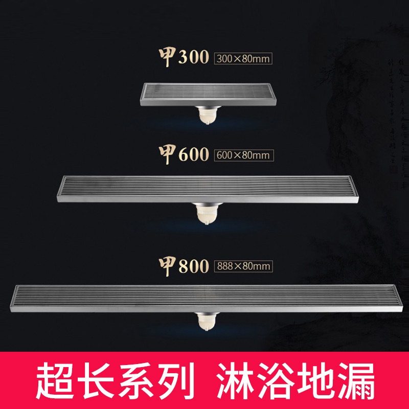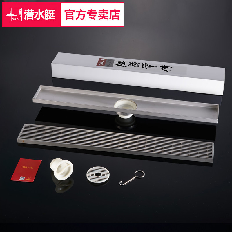 Submarine 304 stainless steel deodorant extended strip bathroom shower room floor drain rectangular large displacement powder room