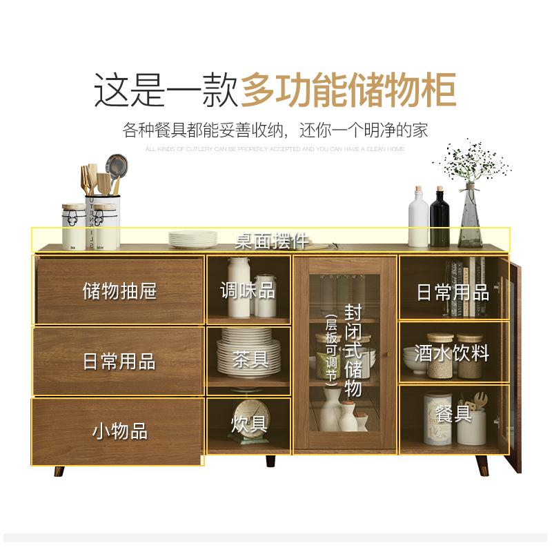 Solid wood sideboard modern simple wine cabinet tea cabinet restaurant large capacity storage cabinet home kitchen cupboard cabinet