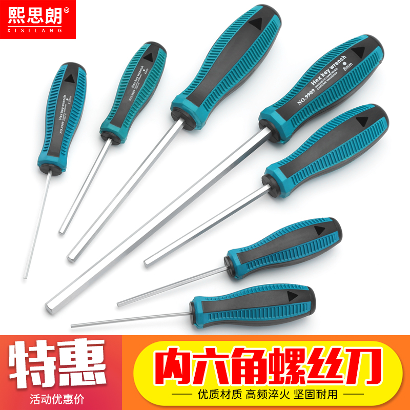 Inner hexagonal screwdriver six angular strong magnetic head-head changing knife industrial-grade straight shank hexagonal ultra-hard screwdriver tool set