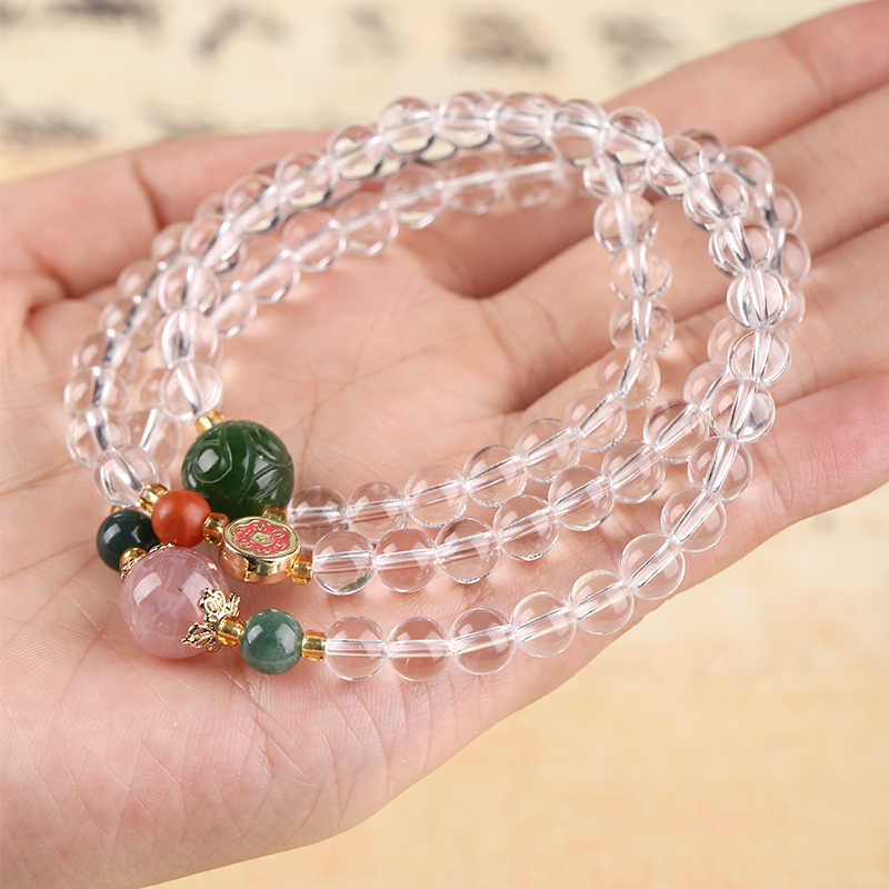 (Carah Blue Mall) Natural white crystal multilayer multi-circle hand string Handheld candida Auspicious Art Gift Gift