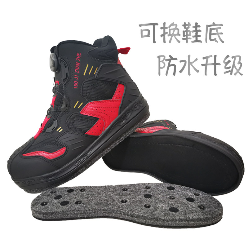 New Pindi Fishing Shoes Den Reef Non-slip Felt Bottom Waterproof Breathable Exchangeable Bottom Road Substeel Nail Fishing Shoes Men And Women