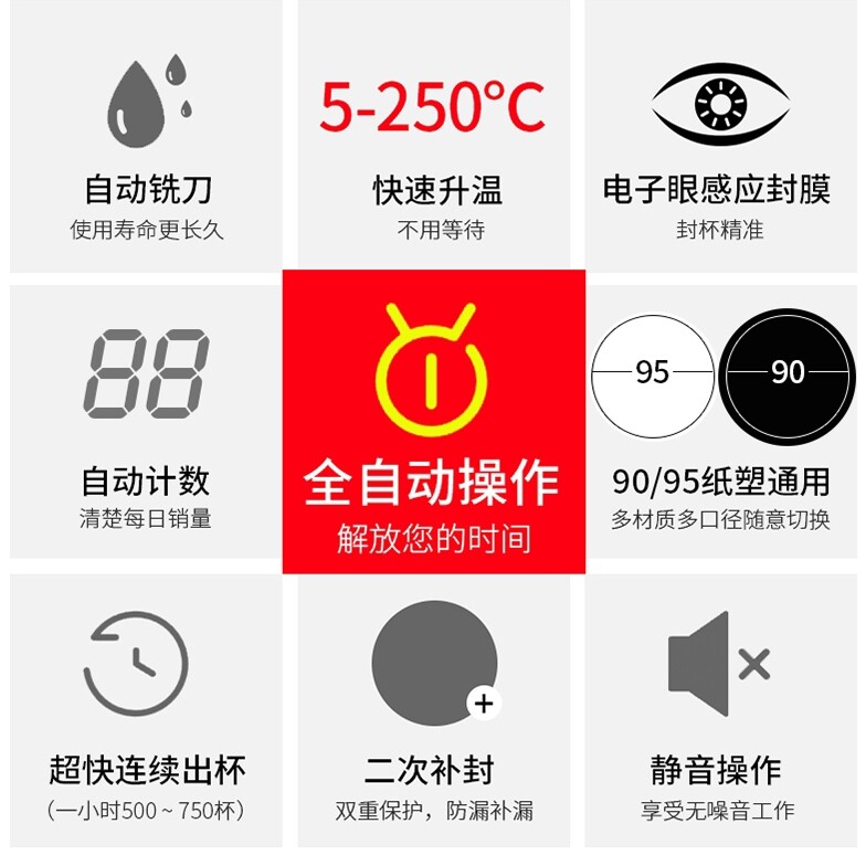 Grace Dada 90 95120 Commercial fully automatic Sealing Machine Milk Tea Shop Cupcake Plastic Cup Hot And Cold Drink Seal Cup Universal