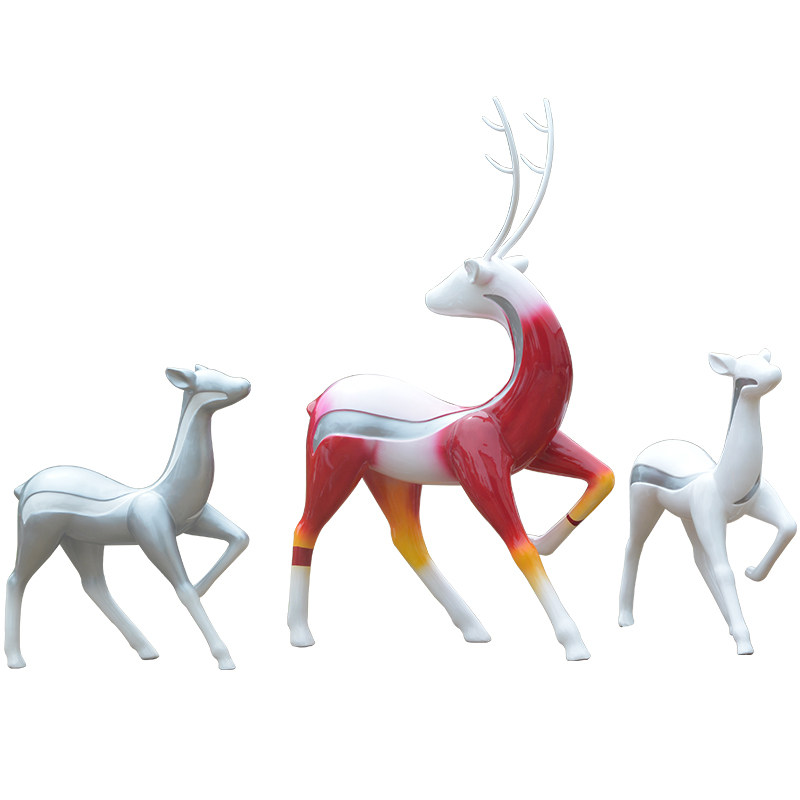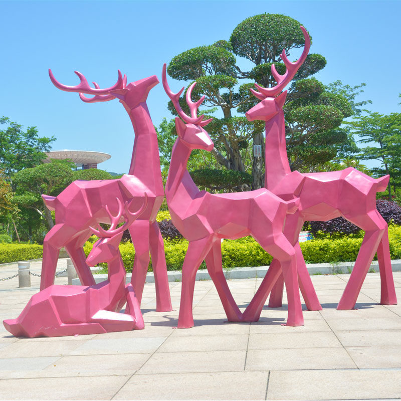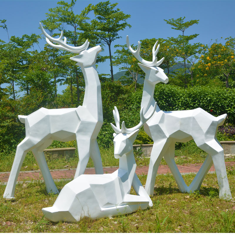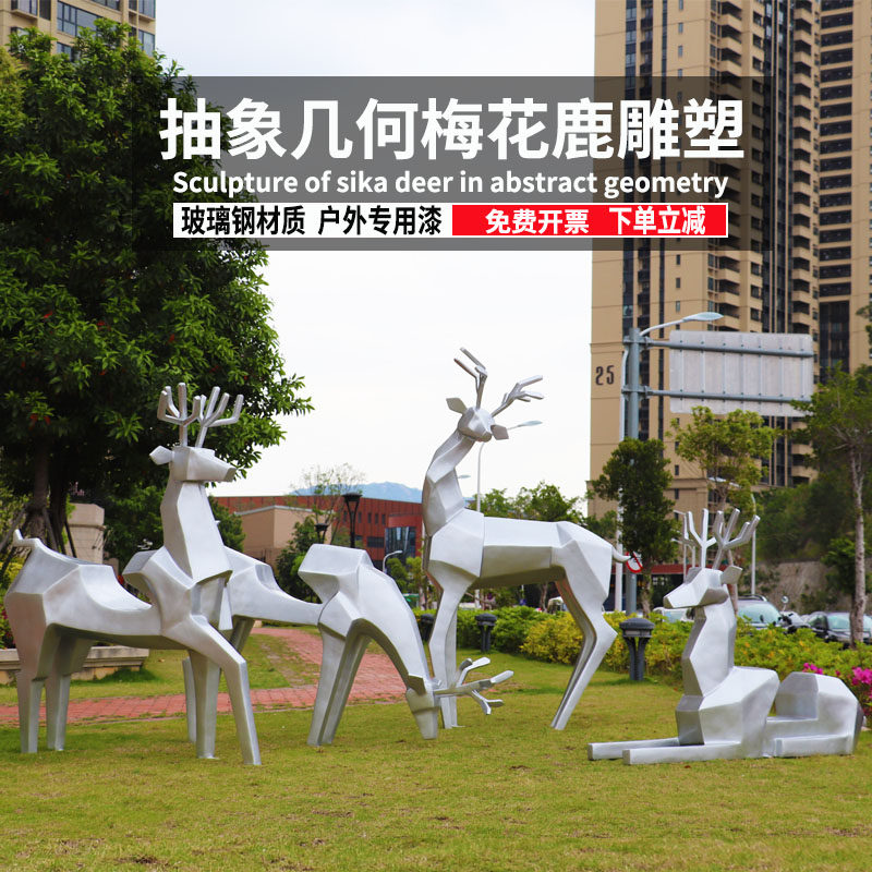 Outdoor geometric deer glass steel abstract sculpture building in giraffe garden landscape decorated plum deer large swing parts