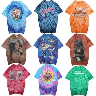 Ancient vintage American Printed Embroidery Gradually Tied Street T-shirt Loose Short Sleeve Men and Women E16