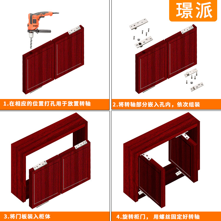 Thickened stainless steel 360 degree rotating shaft wooden door upper and lower hinge positioning door shaft earth and earth shaft rotating shaft hidden hinge