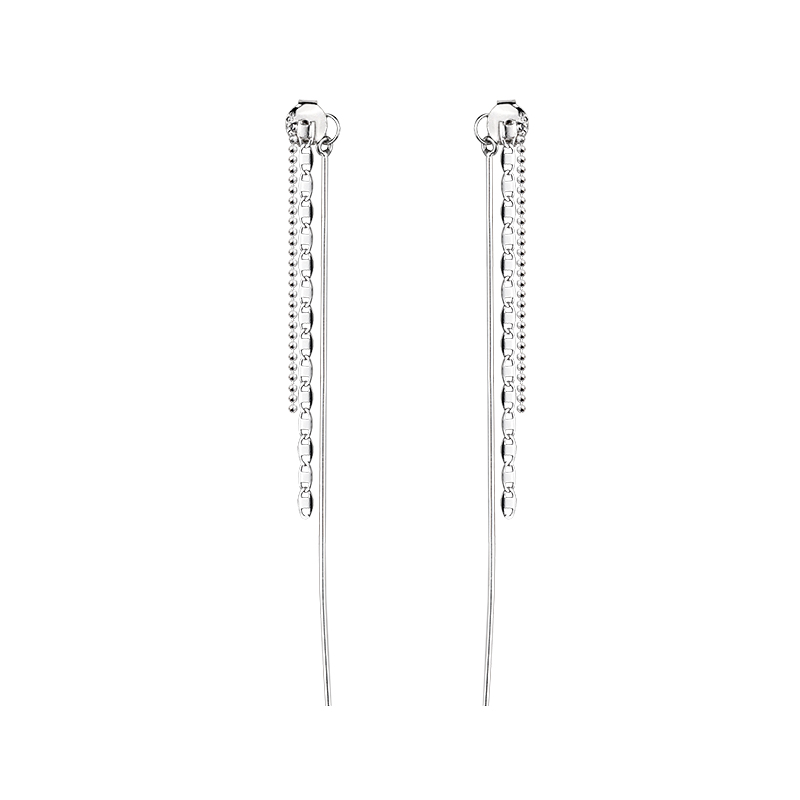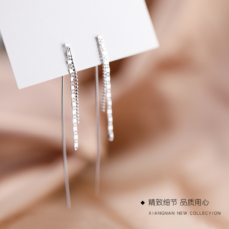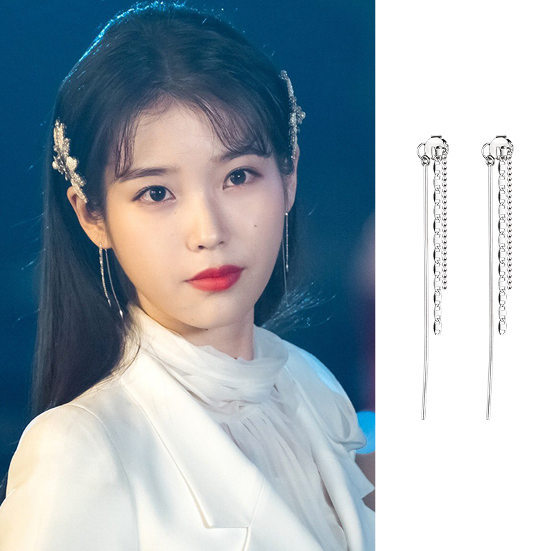 Lane south 925 sterling silver Druna hotel iu Zhang full moon with the same ear necklace female ear needle simple tassel thin earrings