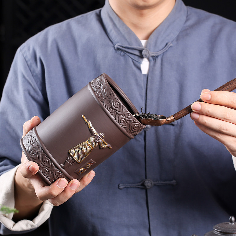 Purple Sand Tea Leaf Jar Ceramic Seal Tank Big Pu'er Loose Tea Pot Creative Personality Qi Tian Great Sacred Tea Set Accessories