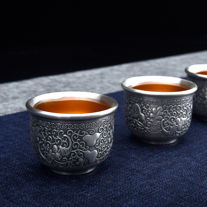 Pure Silver Foru Tea Cup (Single Cup) 36g Pure Silver Forlux Teapot 190g Teapot 4 Cups (total 334g)