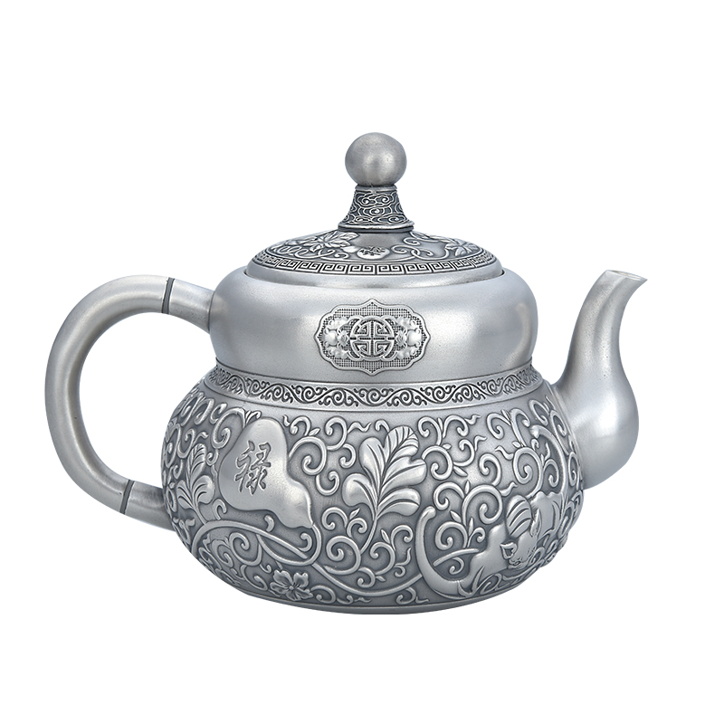 Tai'an Silver Industry Silver Pot Fu Lu Teapot Pure Silver Bubble Teapot Office Foot Silver 999 Kongfu Tea Furniture Set Group Gift