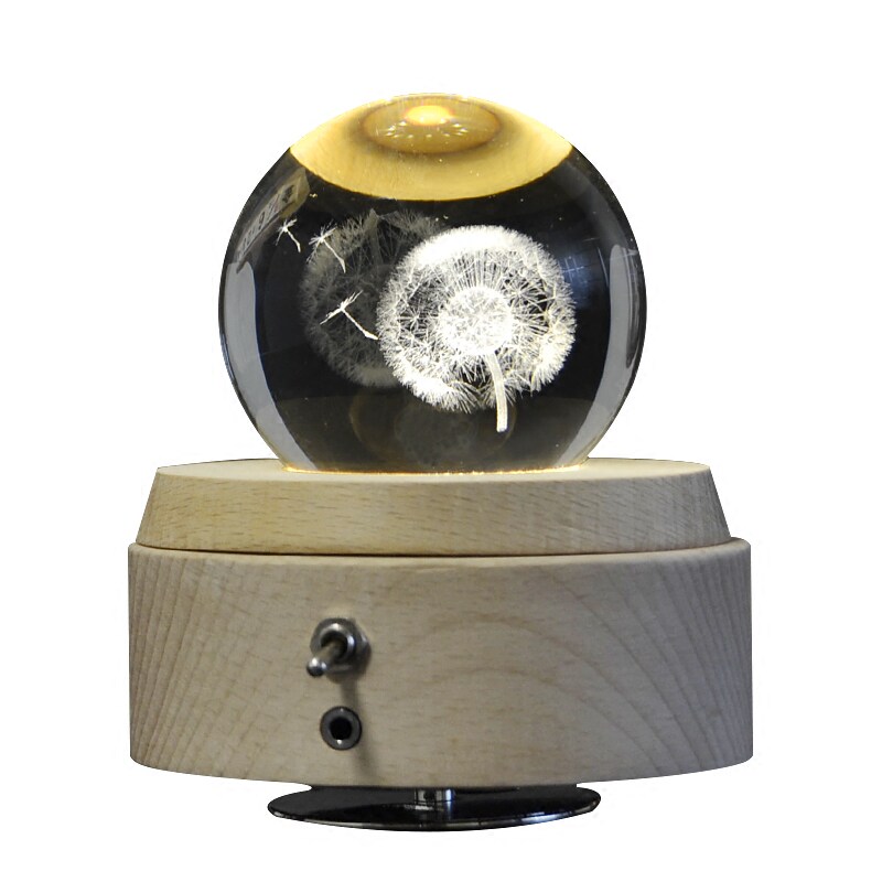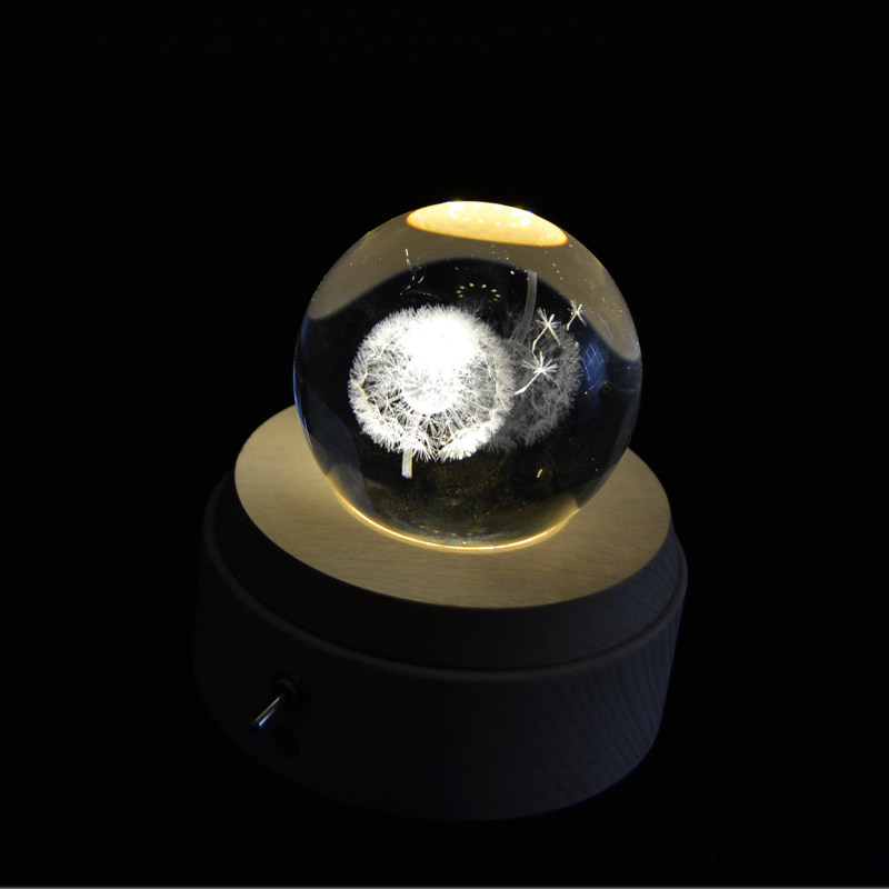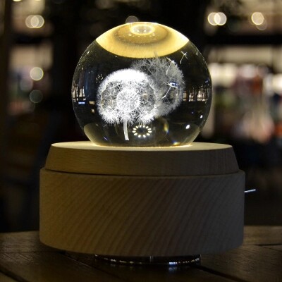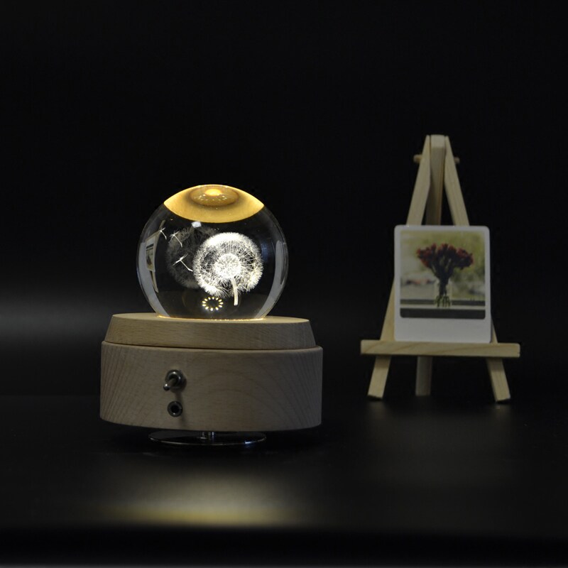 Dandelion crystal ball ornament luminous wooden music box Music box Male and female Teacher's Day Birthday gift Female teacher