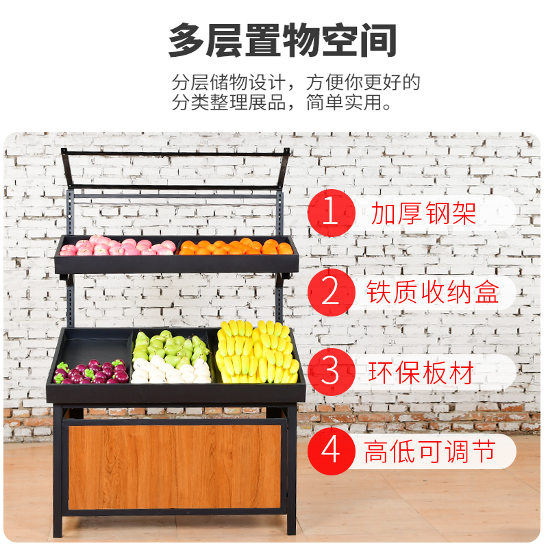 Supermarket fruit shelf display rack multifunctional fruit shelf vegetable shelf steel wood frame fruit shop wooden