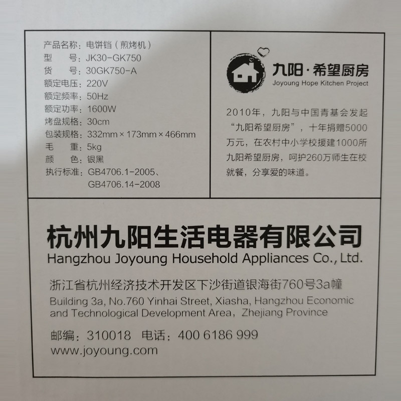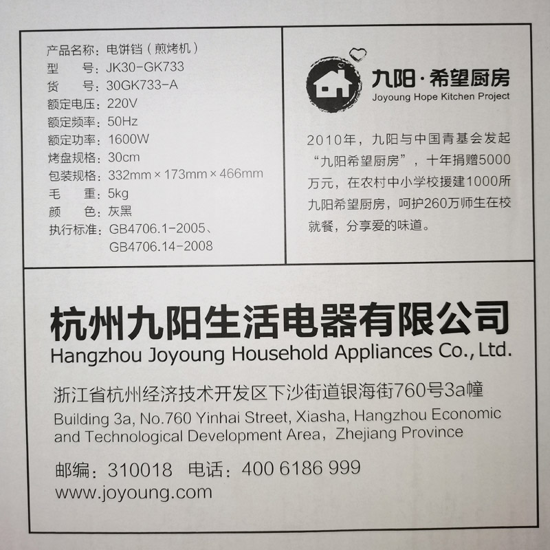 Joyoung Jiuyang JK-30E12 732733750 electric cake pan with multifunctional frying and frying and baking machine