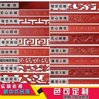 Chinese solid wood line carved waist line border line European hanging ceiling flat screen TV background wall decorative strip wood strip