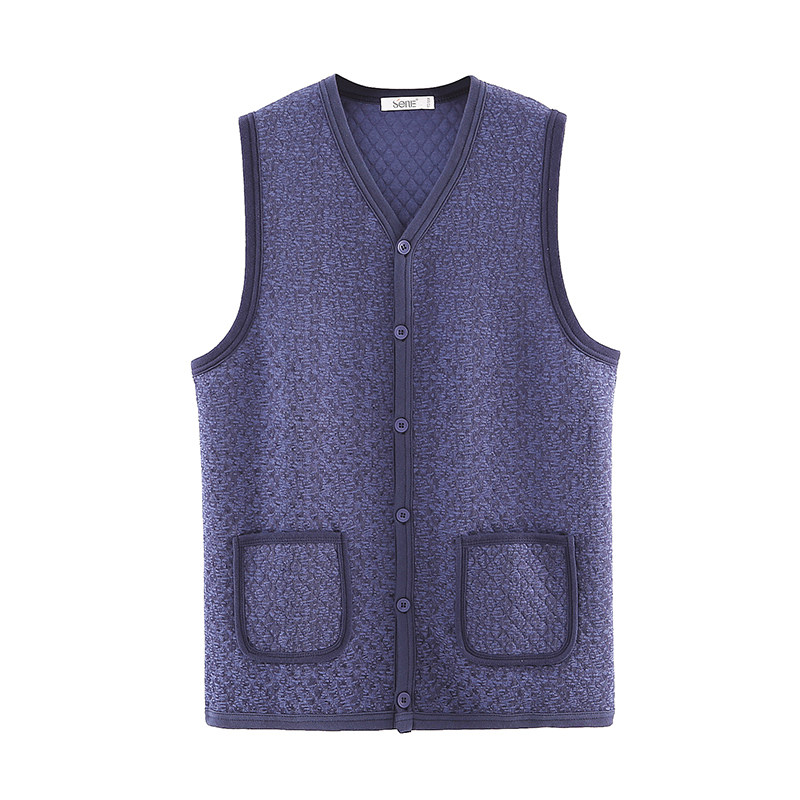 Sen goose middle-aged and elderly waistcoat men winter padded cotton three-layer warm cotton dad v-neck open waistcoat waistcoat
