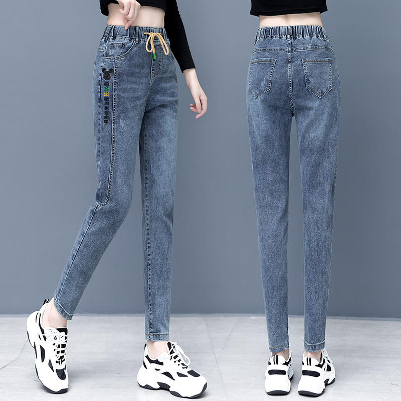 Belly jeans 2021 new spring and Autumn women's elastic high waist thin feet pencil nine-point pants