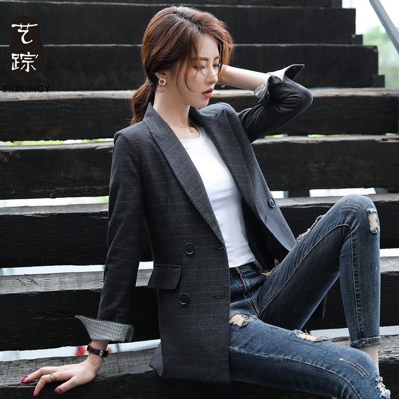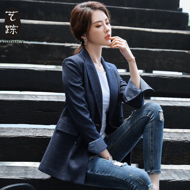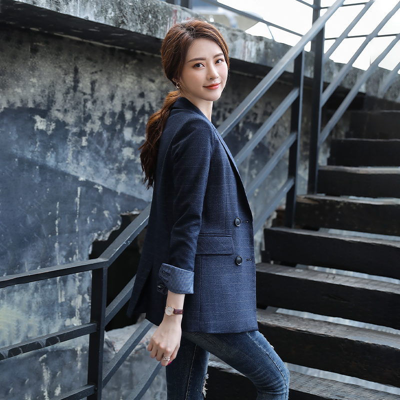 Plaid suit jacket female long sleeve Korean version Spring fall new loose Inn Wind Leisure 100 hitch a little west suit