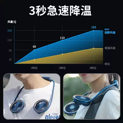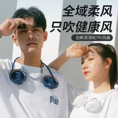 Hanging neck fan Small fan Mini portable sports usb rechargeable portable lazy hanging neck fan Lightweight student dormitory office Children's silent kitchen Big wind electric fan