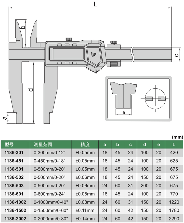 British show insize digital caliper 1136-501 large range long claw caliper 0-300-500-600-1000