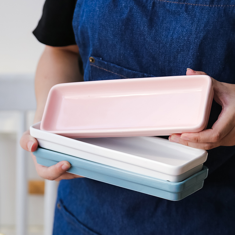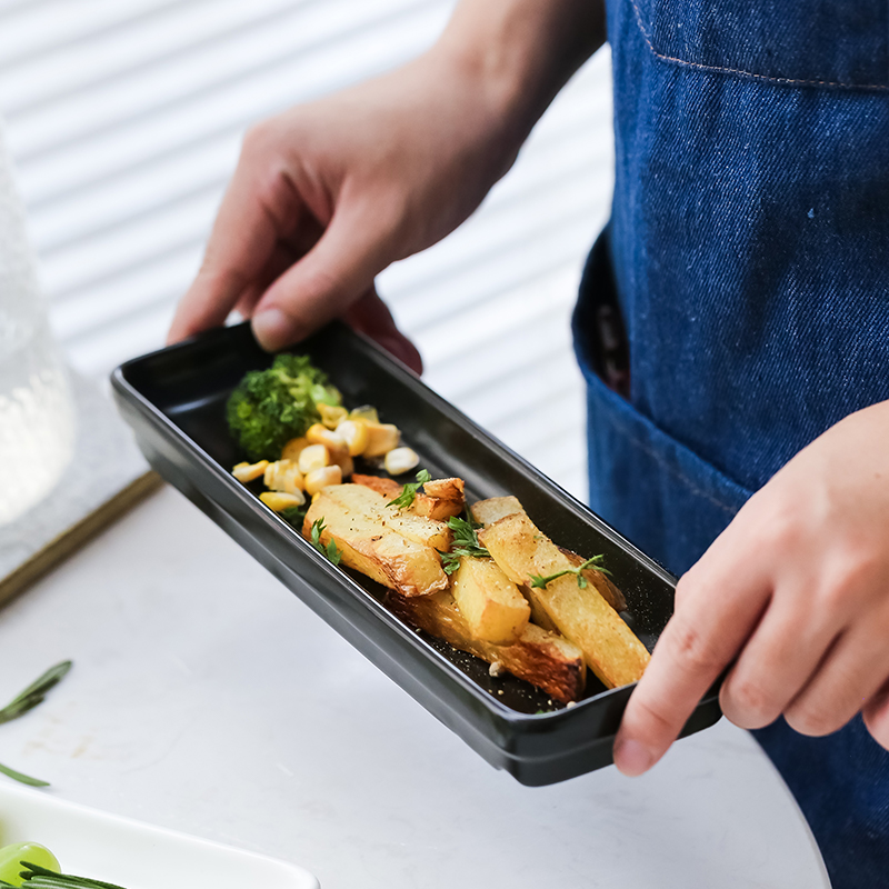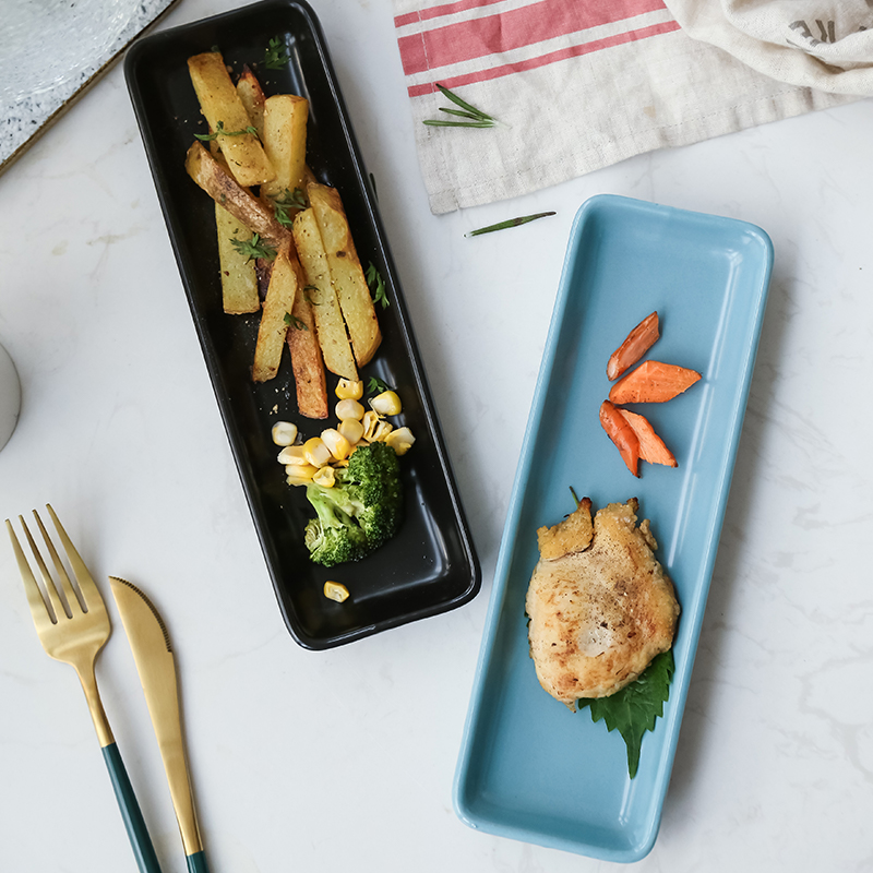 Long strip snack plate (matte blue) long strip snack dish (matte black) long strip snack dish (matte and white) long strip snack dish (matte powder)