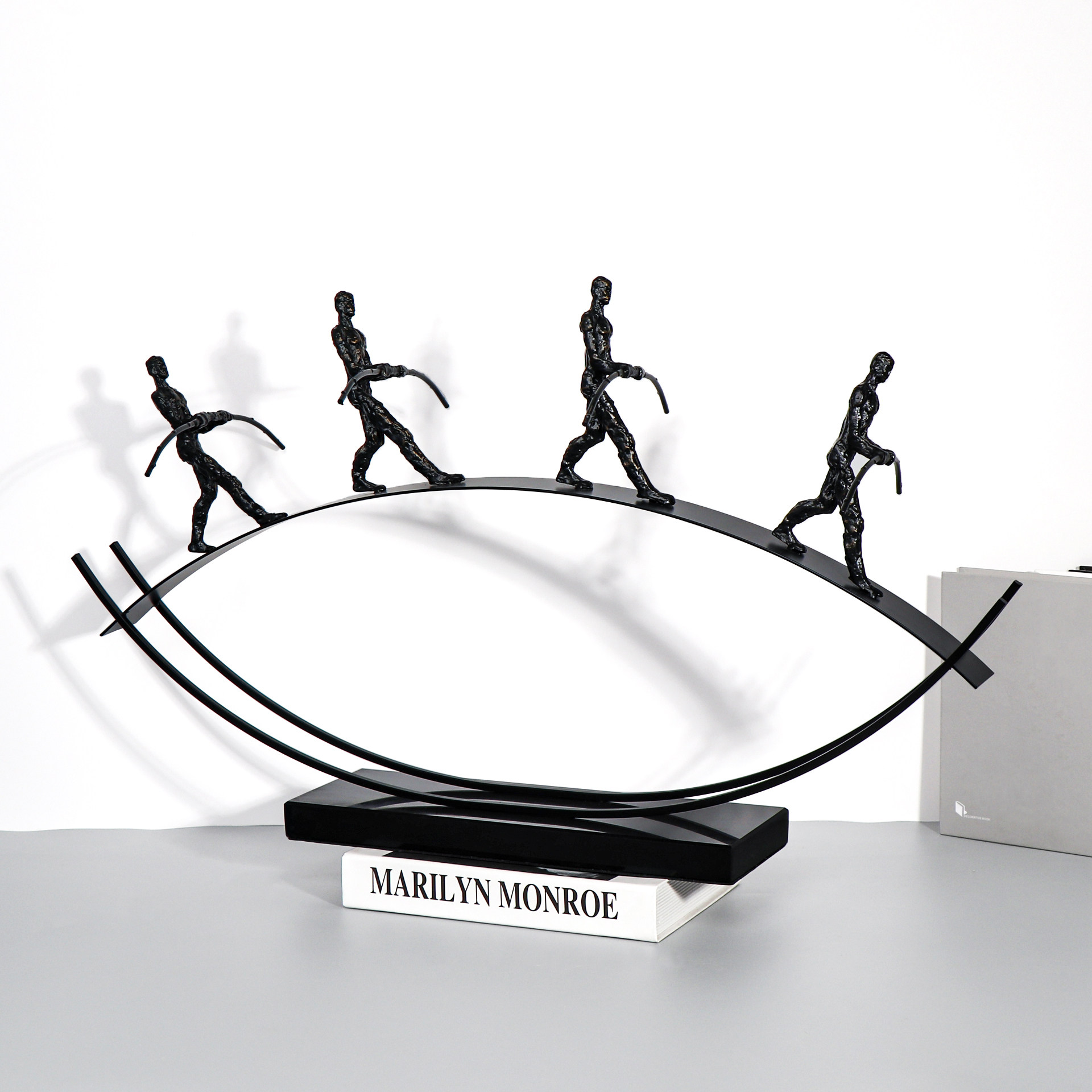 New Chinese-style modern model room creative metal figure sculpture large decoration hotel club home porch decoration