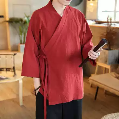 Hanfu men's ancient style jacket Buddha system Men's Zen clothing youth Tang suit Chinese style seven short sleeves Republic of China Chinese style robe