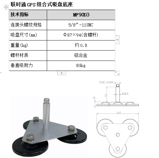 Joint-time pass GPS combined strong magnetic suction cup base MF90D3 for GNSS satellite navigation antenna bracket