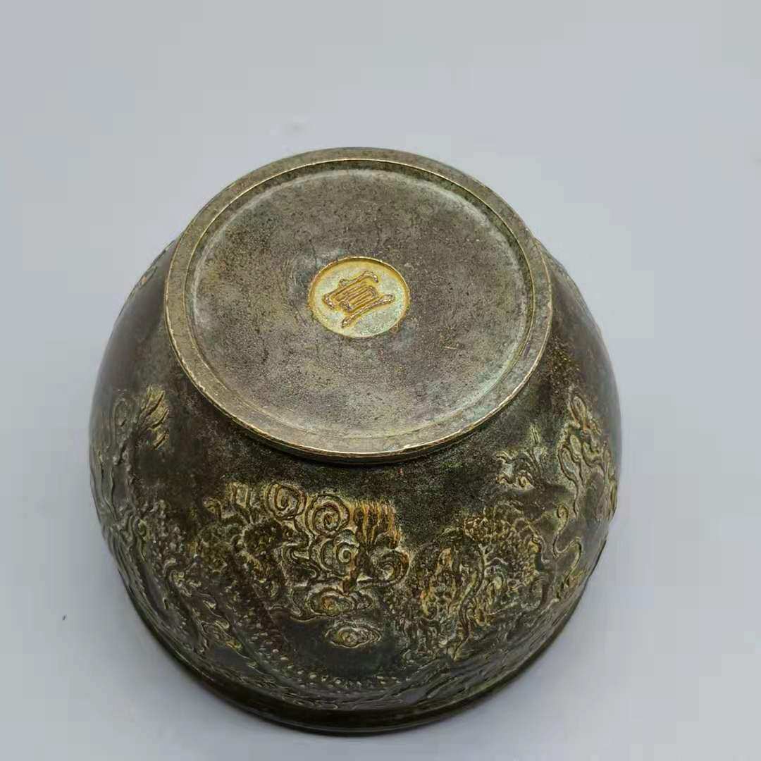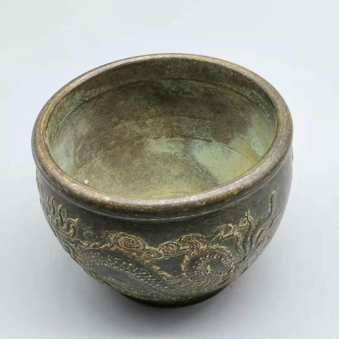 Pure copper cylinder antique and old dragon pattern Xuande cylinder double dragon cylinder old copper pen wash lucky cylinder ornament lucky pot bronze ware