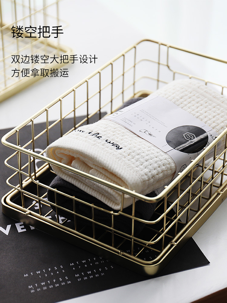 Nordic golden iron storage basket cosmetics shelf household desktop sundries snack basket fruit storage basket