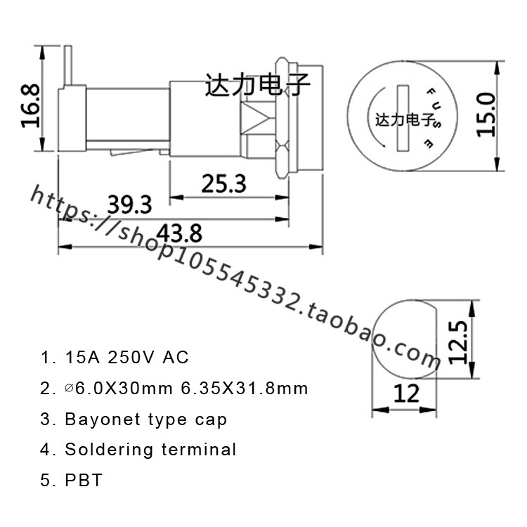 R3-9 imported one-type fuse holder 6x30mm15A250VAC glass tube seat high temperature resistant UL certification