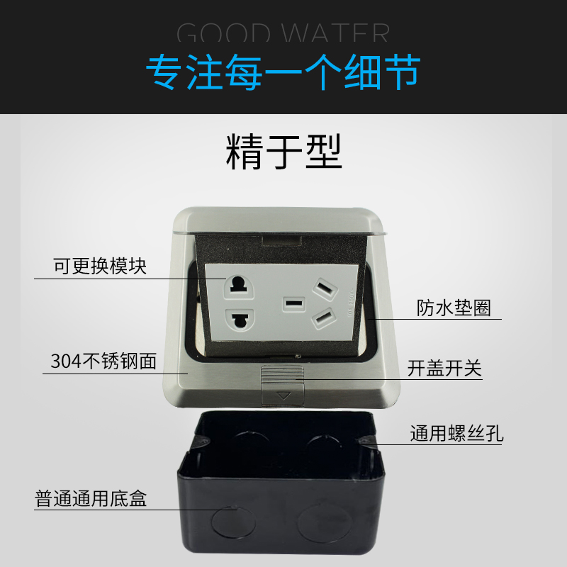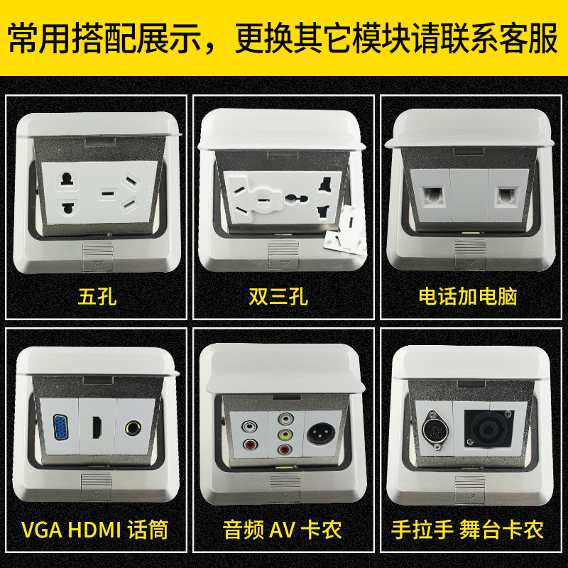 Chi-tong stainless steel hidden internet ground plug-in-style telephone computer ground socket waterproof multimedia ground socket