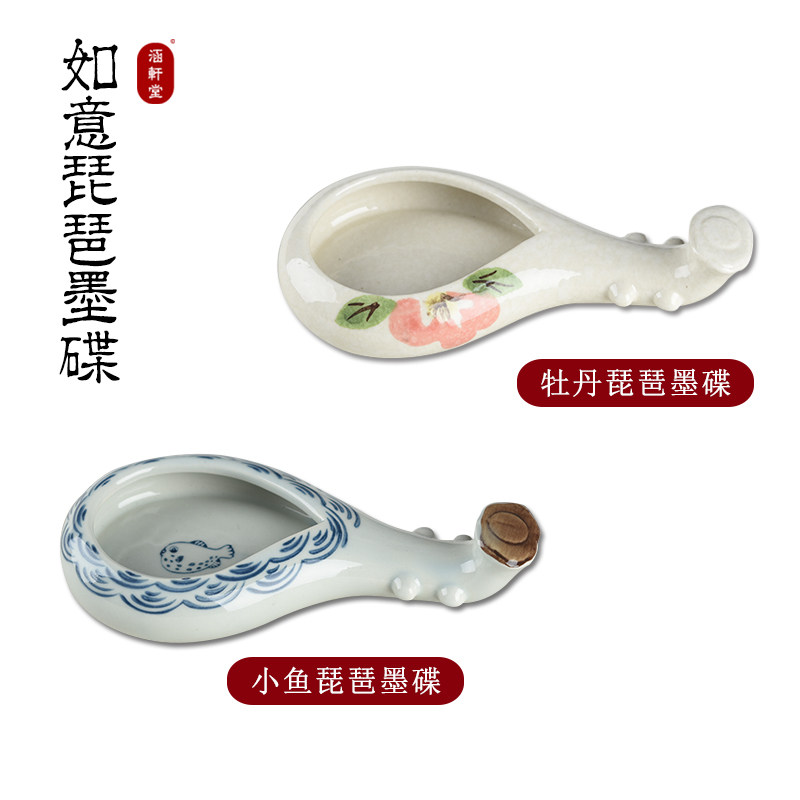 Han Xuantang multi-function ink dish Calligraphy Chinese painting Students practice small inkstone Creative pen holder Cute pen Mountain Ruyi Pipa ink pool water dish Multi-purpose pen holder Pen licking pen Washing ink plate Four treasures of Wenfang