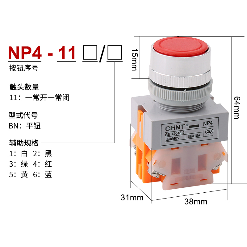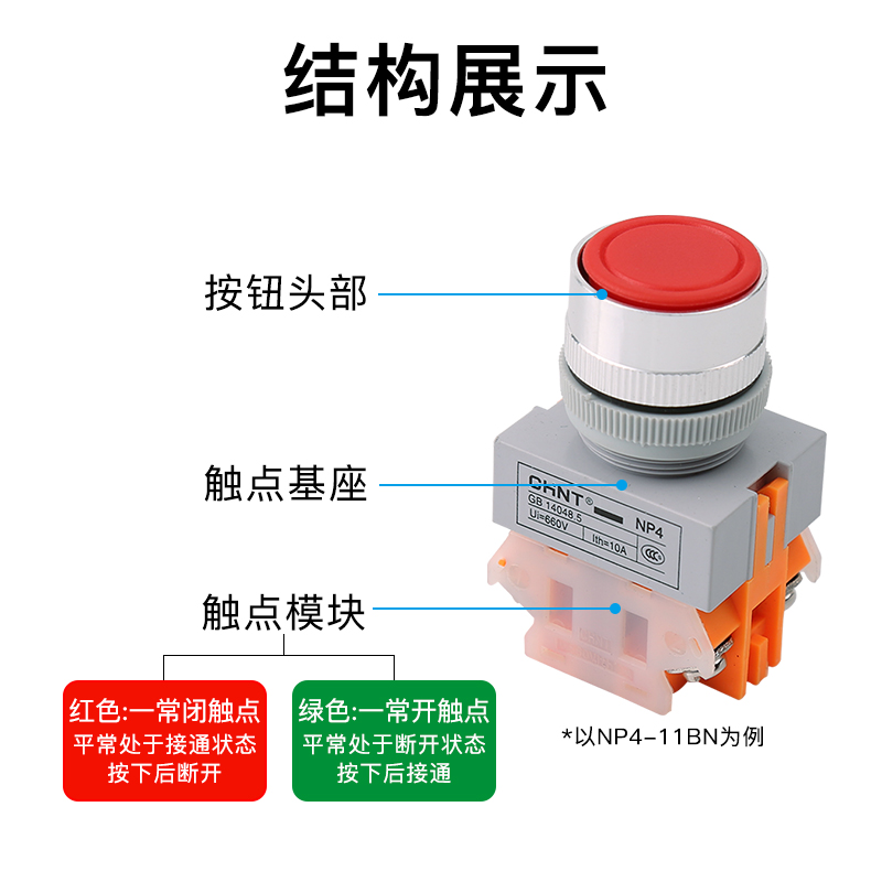 Positive Thai button switch self-reset NP4-11BN flat-head button switch reset switch button is often open and often closed
