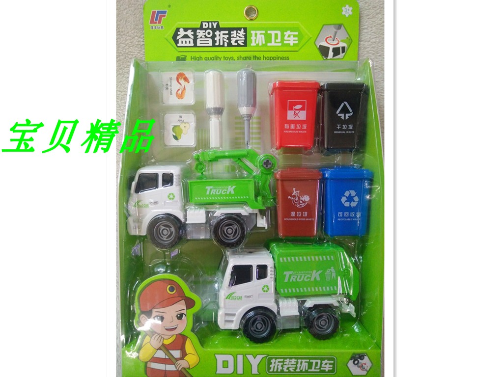 Lotus-Feng intellectual detachable car toy car engineering car sanitation car wringing screw spell and disassembly tool parched loading garbage classification