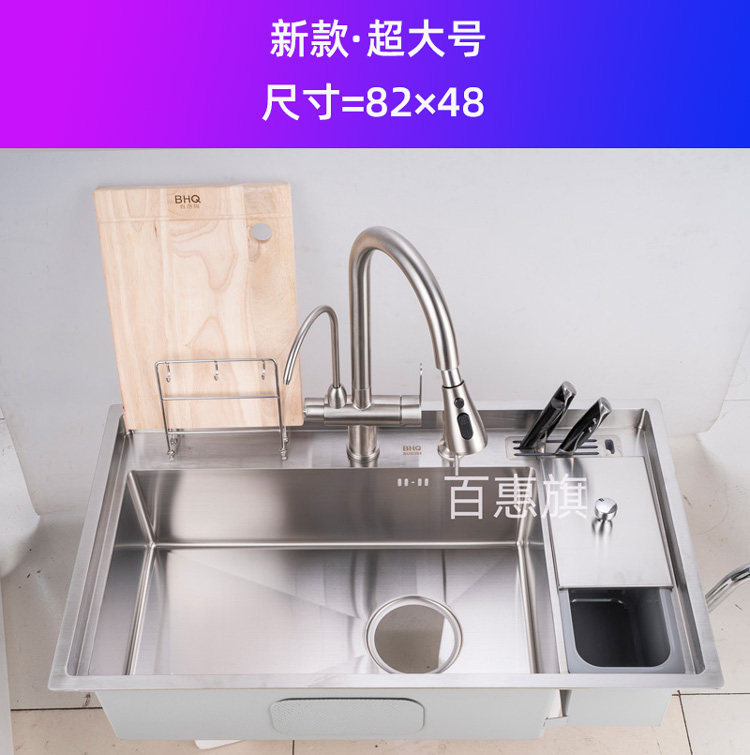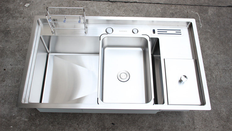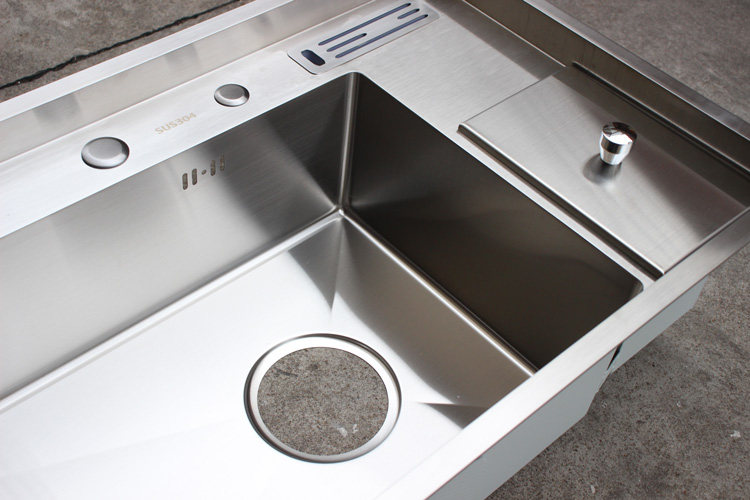 Sink with trash can Single sink thickened 304 stainless steel 4 0 thickness wash basin Kitchen multi-function sink