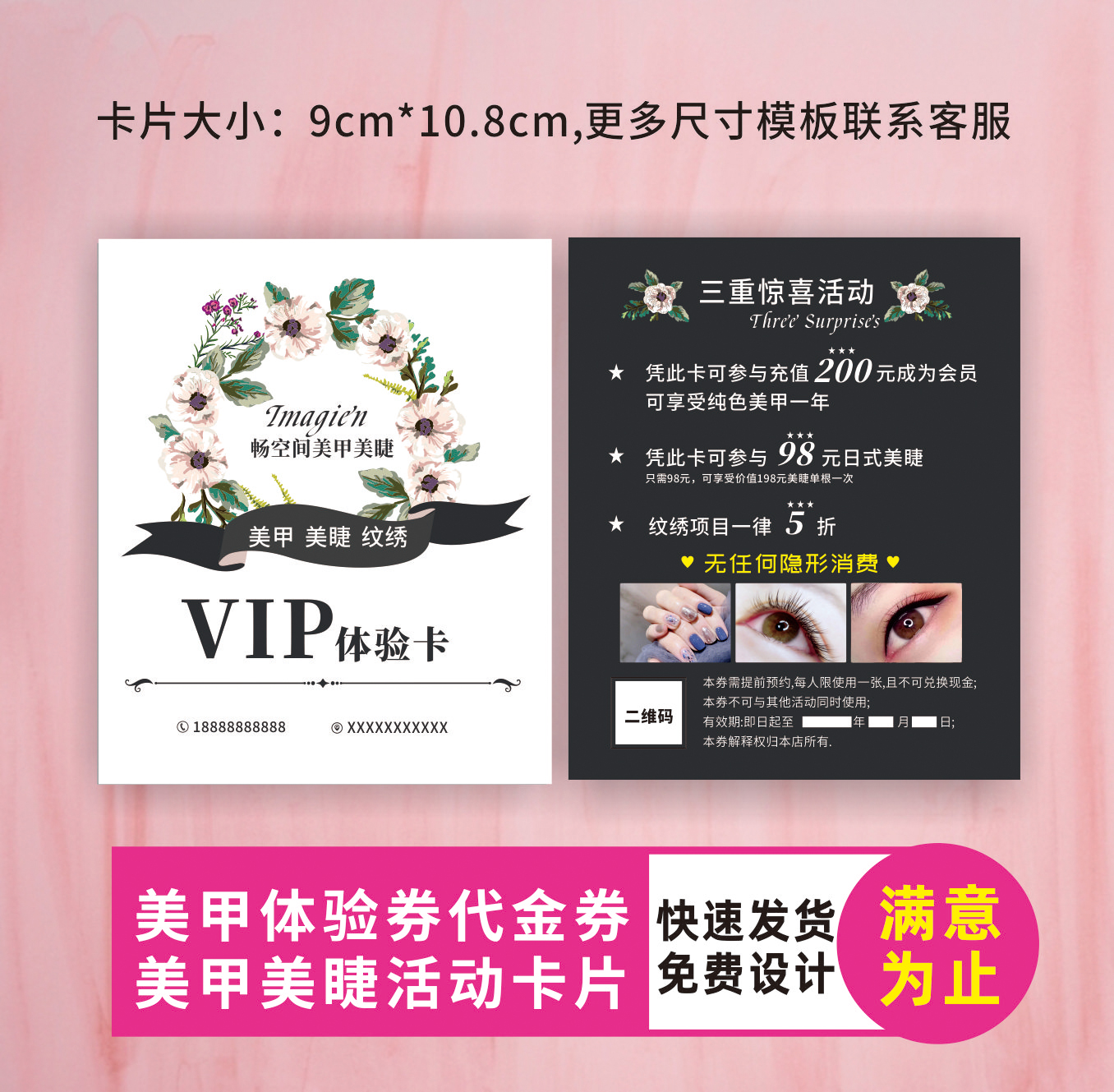 Nail activity small card Nail eyelash voucher Beauty embroidery discount roll opening extension card production design
