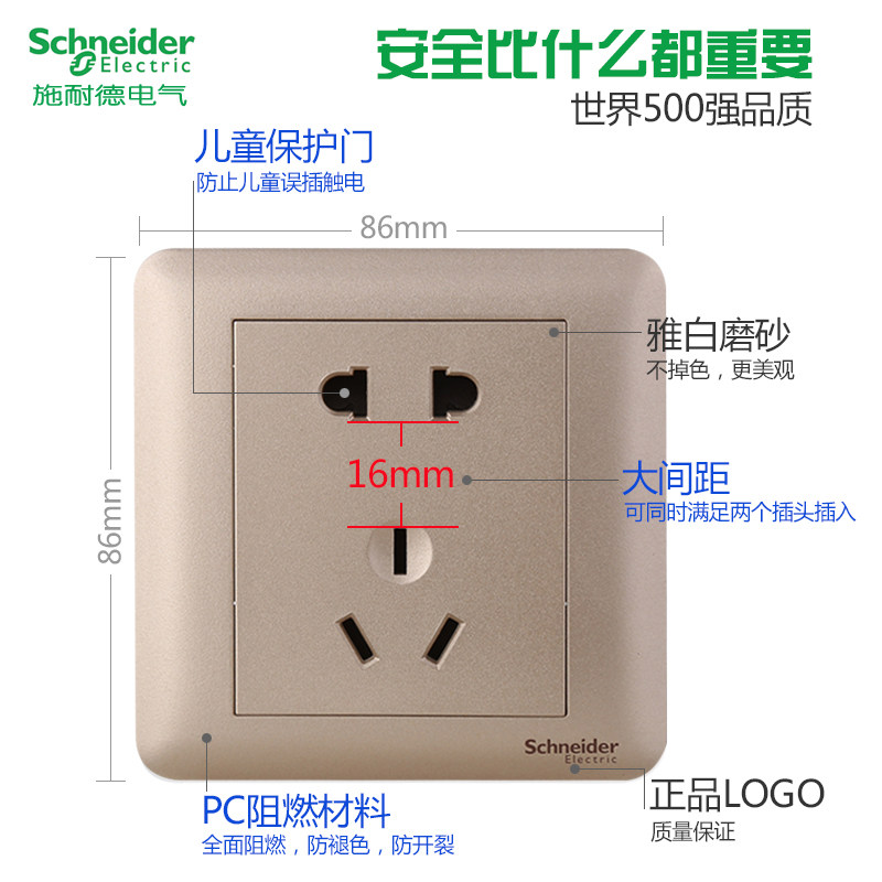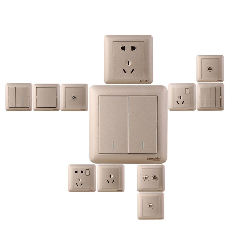 Schneider wall type 86 switch socket panel Changyi gold five-hole socket with switch Household concealed wall type