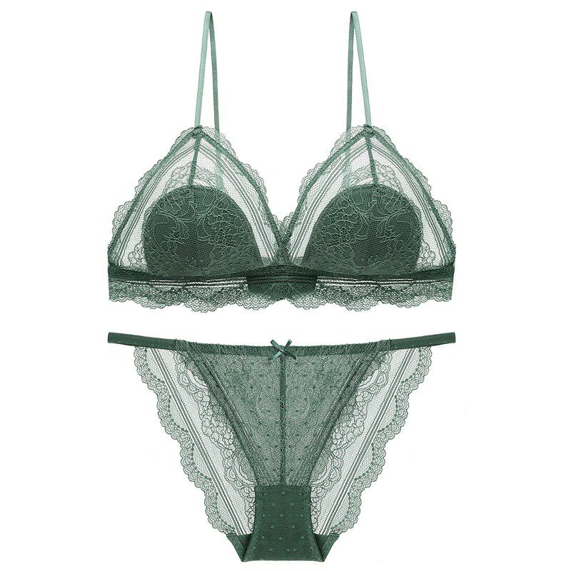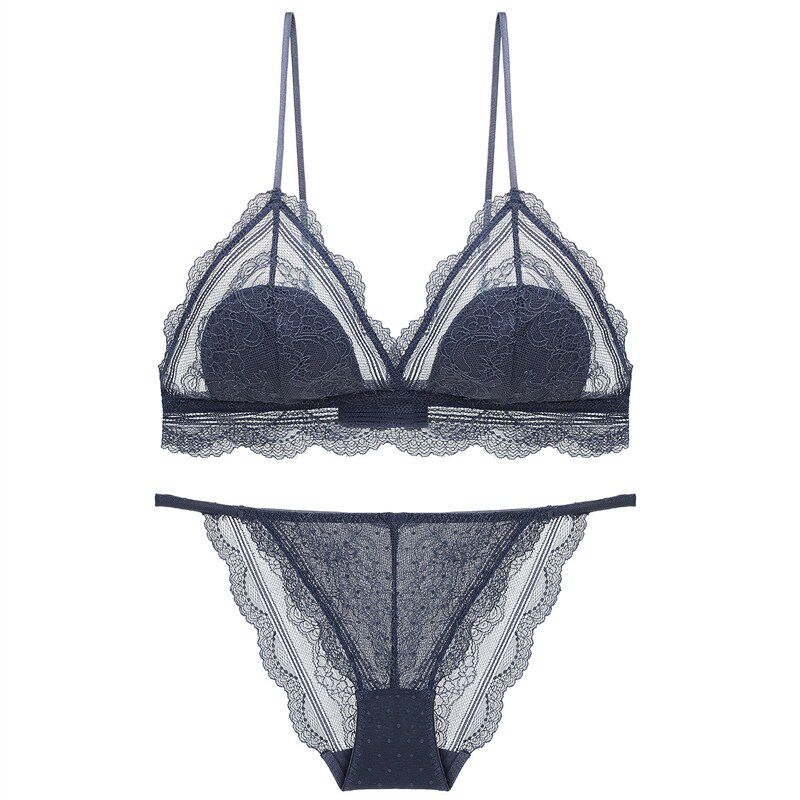 French Sexy Lingerie Retro No Steel Ring Lace Thin Comfortable Underwear Set Adjustment Gathering Triangle Cup Ladies