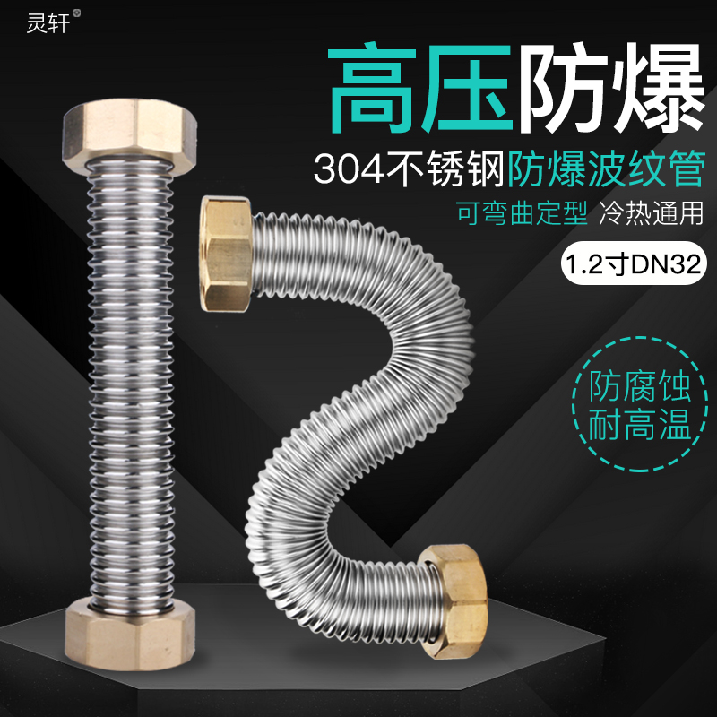 Engineering Private 1 2-inch 304 stainless steel bellows DN32 metal threaded pipe high-pressure explosion-proof hot and cold water inlet