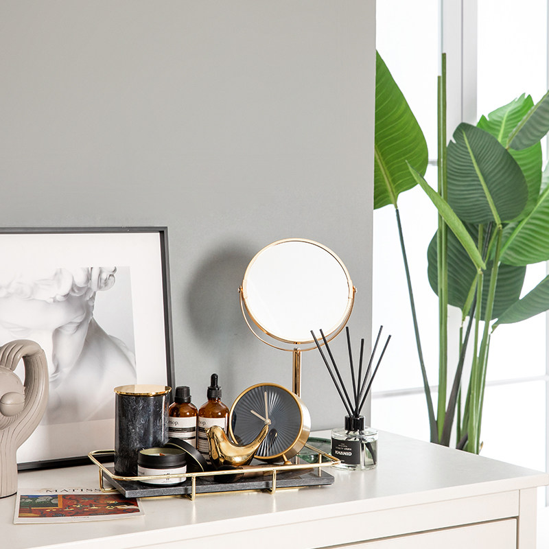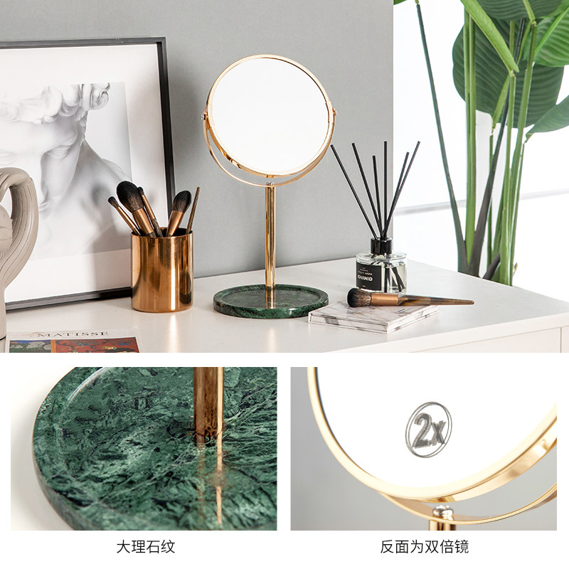 ins light lavish bathroom makeup mirror hotel makeup room mirror desktop Double face enlarged cosmetic mirror marble mirror